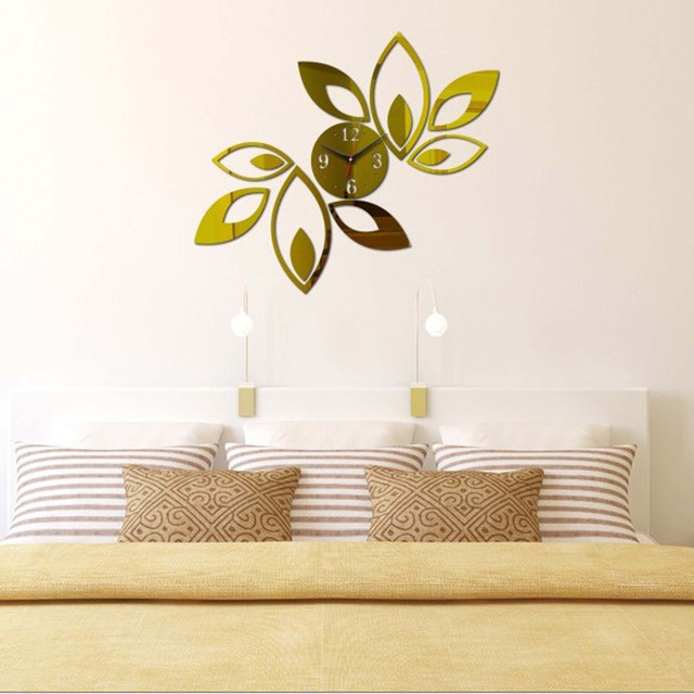 Настінний 3D годинник із дзеркальним ефектом "Leaf" - 3Д годинник наклейка, незвичайний годинник стікери 55х45 см