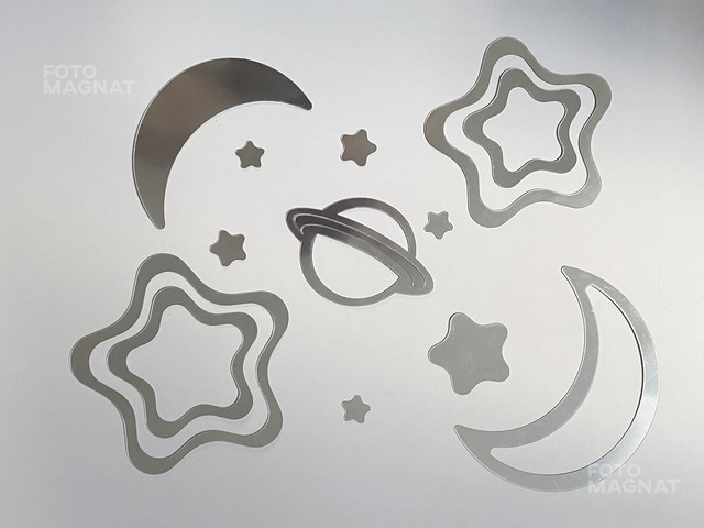 -41%Дзеркальна наліпка на стіну "Galaxy" — акрилова панель для декору інтер'єру, самоклейна 13 шт.
