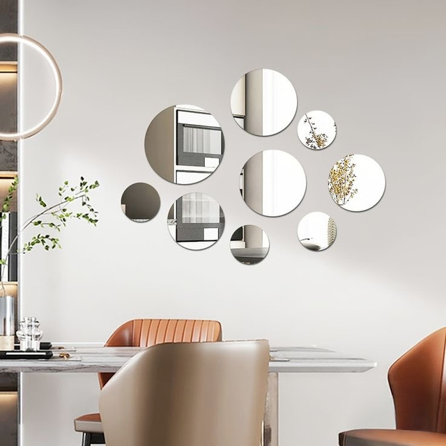 -34%Дзеркальна наліпка на стіну у формі кругів "Disc" — акрилова панель для декору інтер'єру, самоклейна 9 шт.