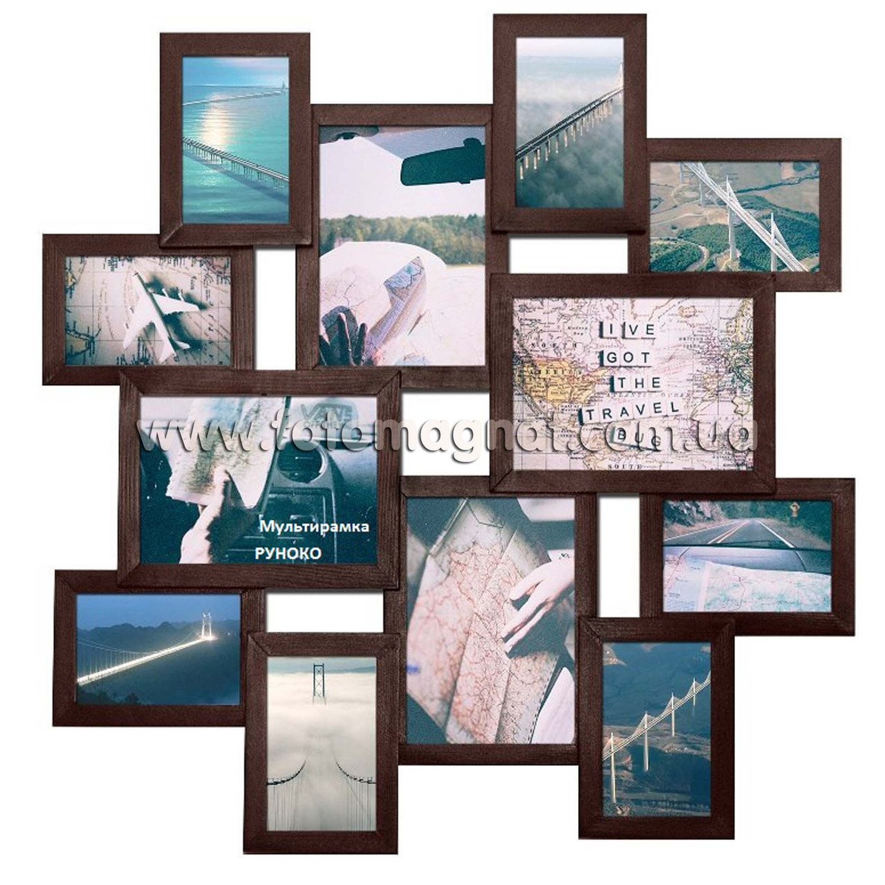 -4%Дерев'яна мультирамка на 12 фото "Руноко Подорож" - Венге (фоторамка колаж 70 х 70 см)