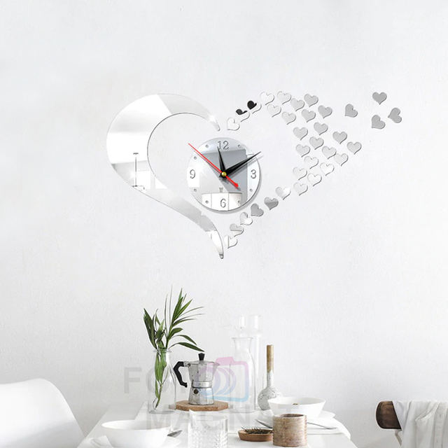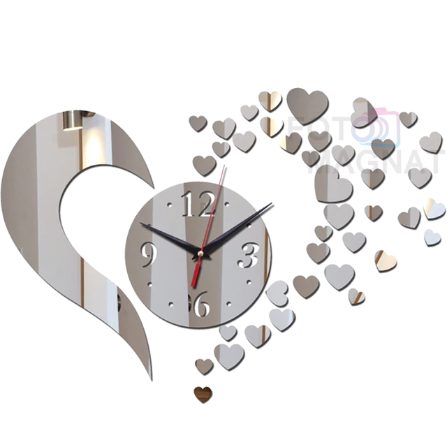 Настінний 3D годинник із дзеркальним ефектом "Аmour" - 3Д годинник наклейка, незвичайний годинник стікери 40х50 см