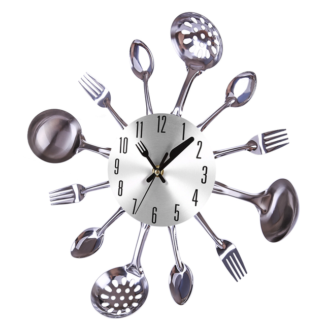 Столові прилади розташовані навколо викликають непідробний інтерес, радимо вішати годинник повище, так як всі захочуть його доторкнутись :)